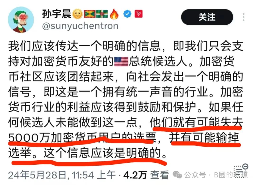 为啥态度会转变这么快呢?核心还是想要赢得大选,因为在mei国加密群体这个圈人非常多,在互相拉选票的阶段,他这样做毫无疑问是对他有利的,同时呢他自己也持有非常多的加密货币。