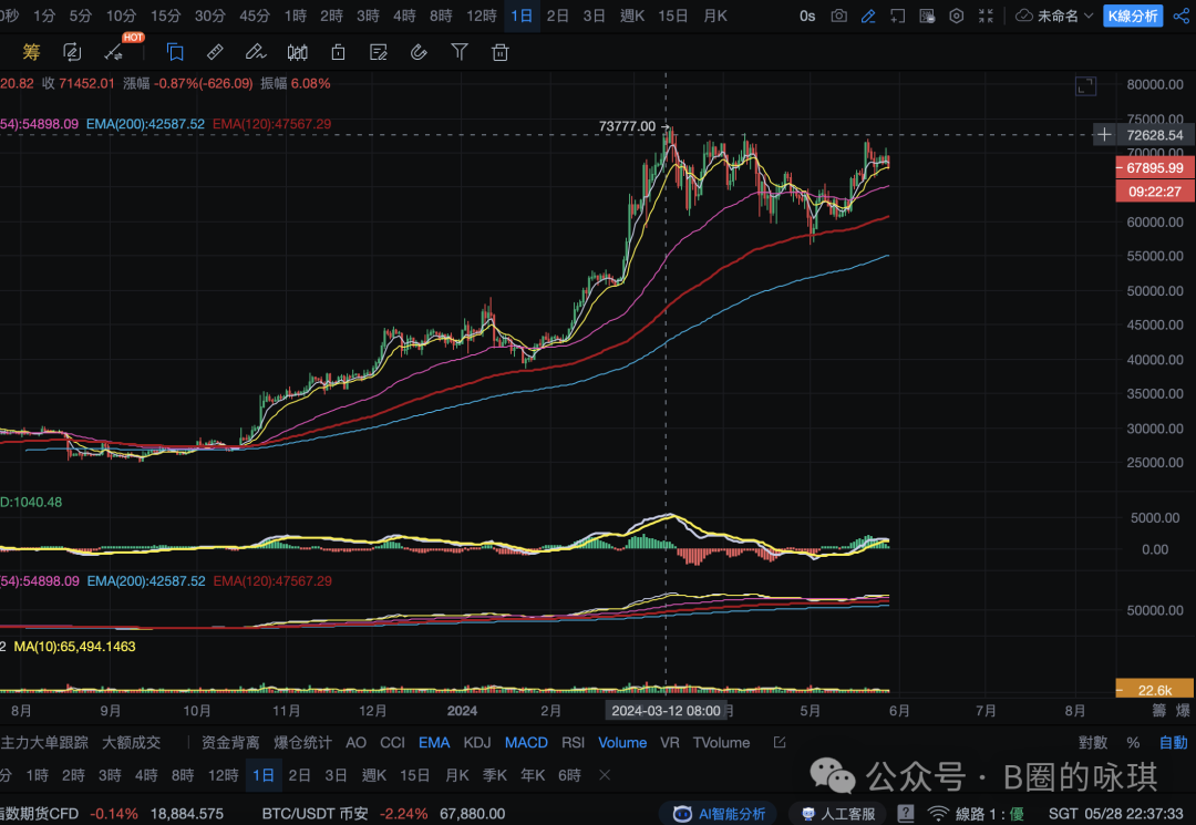 同时以太坊现货ETF的申请通过,也会增加了市场资金的热度,带来一波热钱,现货你就稳稳的拿住了,如果你在这个阶段还不大量的买币,请问:疯牛的时候,你准备拿什么去卖?