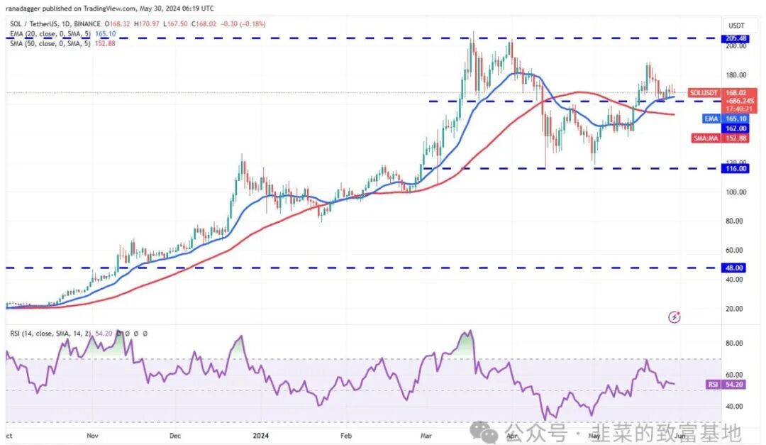 未能走高将鼓励空头将价格拉低至 162 美元以下。如果他们成功做到这一点,SOL/USDT 对可能会跌至 140 美元,随后跌至 116 美元附近的关键支撑位。